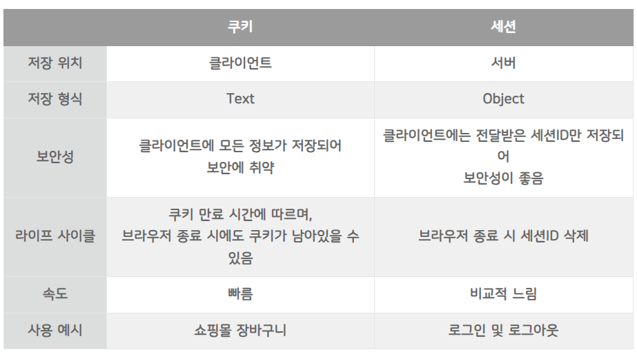 - 그럼.. 쿠키나 세션이 정확이 어떤 차이인지 모르렜어요...