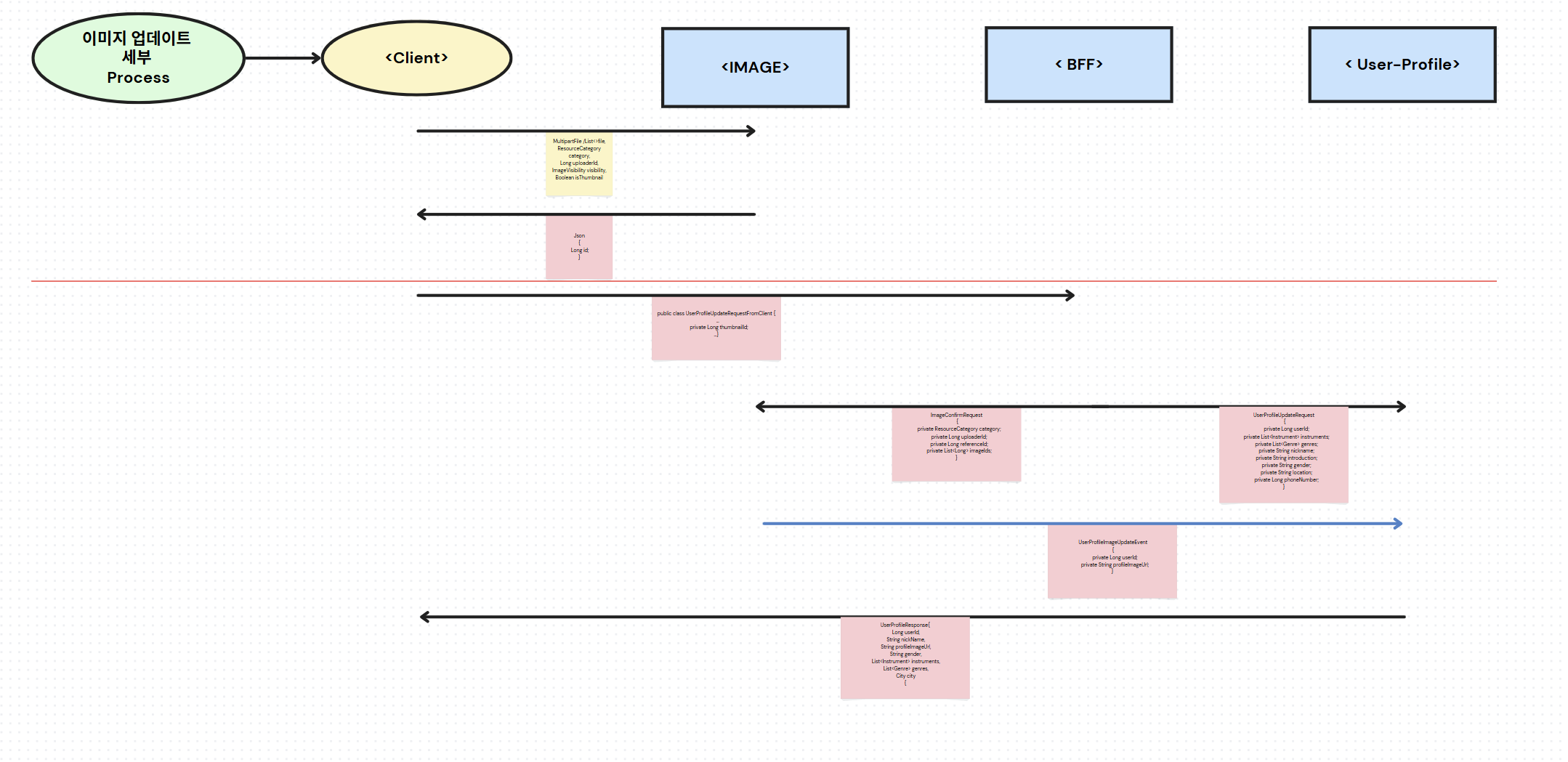 }이런식으로 전달하여(여기선, 이미지 프로필이기에 Long 으로 주었지만, BFF내부에서 List 객체로 변환한다) 넘긴다.... 이미지 모듈에서 처리하는... 방식을... 통일 하기위해..? 이부분은 나중에 테스트나.. 멘토님한테 한번 물어봐야할듯..?)