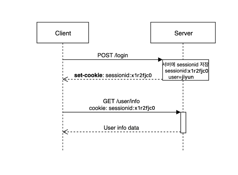 클라이언트는 쿠키에 SessionId를 저장한 후 서버도 이걸 가지고 있어야 한다.