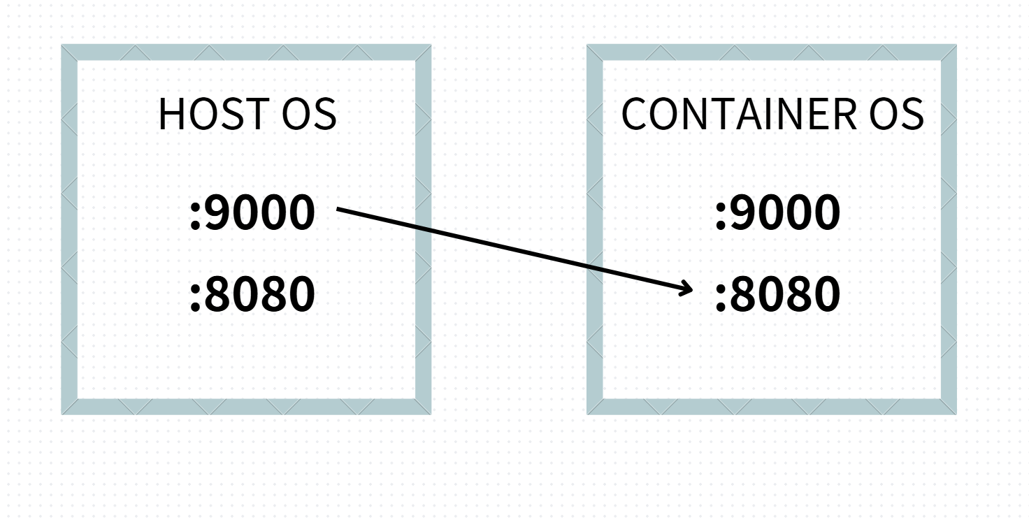 - localhost:9000 으로 어떤 요청이오면 -> 컨테이너에서 localhost:8080 으로 넘겨준다!
