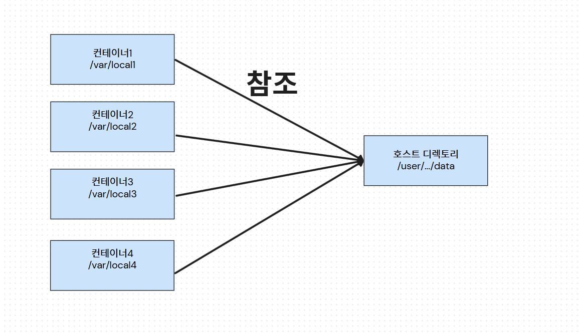 - 단점: 호스트의 파일 시스템 구조에 강하게 의존하게 됩니다. 만약 다른 환경의 호스트에 동일한 경로의 디렉터리가 없다면 컨테이너를 실행할 수 없어 이식성이 떨어집니다. 또한, 컨테이너가 호스트의 파일 시스템에 직접 접근하므로 보안상 위험이 있을 수 있습니다.